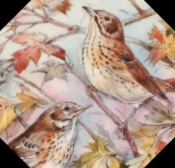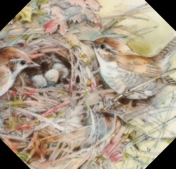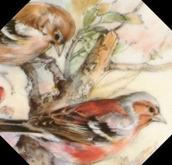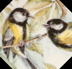Garden Birds Original artwork by Un-Known in 1986 Series of Four: Thrush, Wren, The Great Tit, and The Chaffinch |