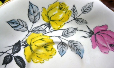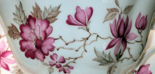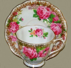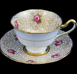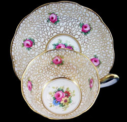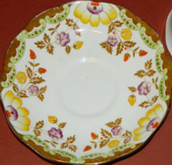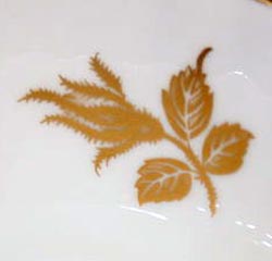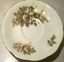 Un-Named Set # 812 Introduced: 1930s Description: Small Pink Roses, Gold Crackle background, gold trim |