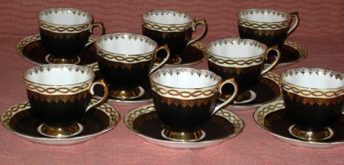 Un-Named Set # 807 Introduced: Smooth Shape, Gold Band, Gold trim, Black and gold design |