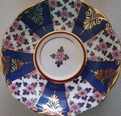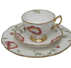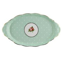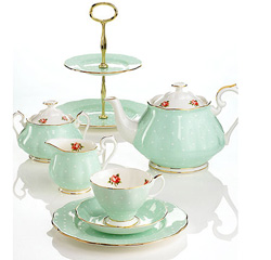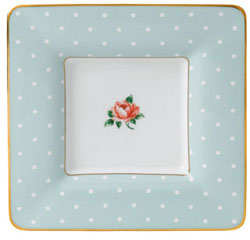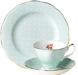 Polka Rose In 1935, Edward VIII abdicated, bringing George VI to the throne together with his young bride, Queen Elizabeth, who became one of the best known and loved royals. Ground colours with polka dots were extremely popular in the 1930's and Polka Rose features this Art Deco style on a fresh Apple Green background with the addition of a single rose in the centre of the saucer. |