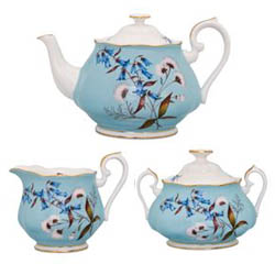 ![]() It's half way through the century and after the deprivations of the Second World War period people revelled in colour and new design ideas. Stylised and bold patterns were increasingly popular and Festival was typical of the decade. The soft blue from the tableware design has been used for Patricia's dress and it's embellished with harebells -- the result an unusual and distinctive figurine. |