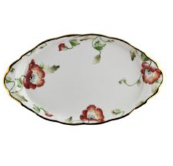 ![]() Margaret's dress is adorned with the fresh roses from the Duchess design and it falls over a dramatic under petticoat inspired by the bold rim decoration on the original tableware pattern. |