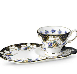Duchess George V came to the throne in 1910 after the death of King Edward VII. Later in the decade Britain, along with many other countries endured the First World War. The Duchess pattern is inspired by designs from this period and has echoes of the regency style, with a solid black colour, but now with Royal Albert's signature roses. |