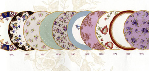 100 Years of Royal Albert Collection A One-of-a-Kind Collection Cup Shape: Malvern Series of Ten: Regency Blue, Duchess, Spring Meadow, Polka Rose, English Chintz, Festival Golden Roses, Poppy, Holyrood, and Hartington Lane |