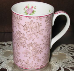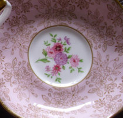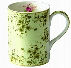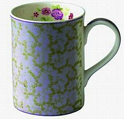 Designer Alison Bellerby commented, "I interpreted each print in a subtle way to create a pretty background and linked it with a pastel shade to form four feminine designs." She added, "I was also delighted to find some very sweet floral sprays of roses, violets, and other country garden flowers and I scaled these down to provide decoration inside the cups and mugs."