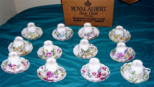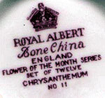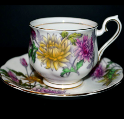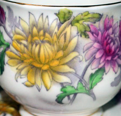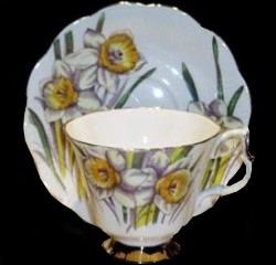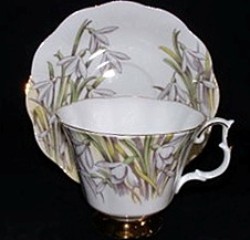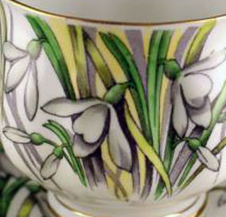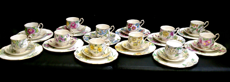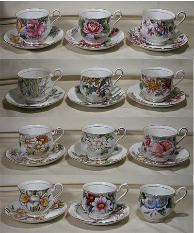 Flower of the Month 1950s to 1960s Cup Shape: Hampton and Gainsborough Series of 12: Snowdrop, Violets, Daffodil, Daisy, Hawthorn, Dog Rose, Water Lily, Poppy, Morning Glory, Cosmos, Chrysanthemum, and Holly |
