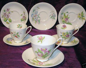 EST 1950s Cup Shape: Smooth Series of 12: Snowdrop, Violet, Daffodil, Daisy, Hawthorn, Rose, Larkspur, Poppy, Morning Glory, Cosmos, Chrysanthemum, Holly |