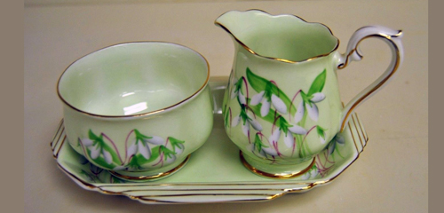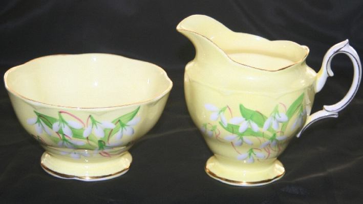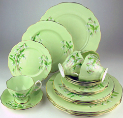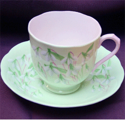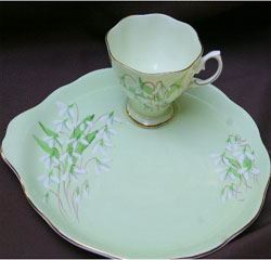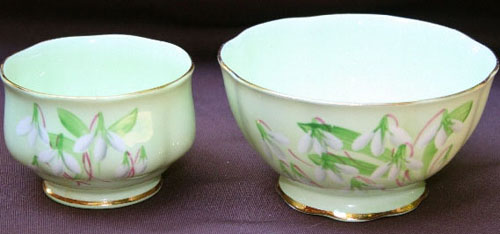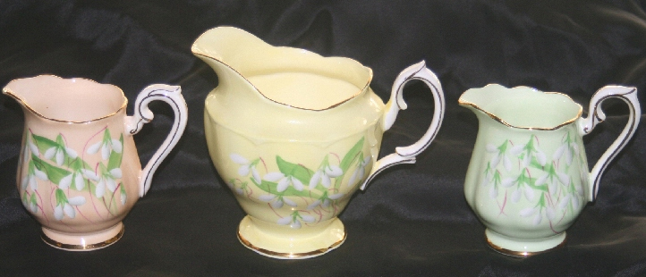 Laurentian Snowdrop 1940s to 1950s Colors: Green, Green with Pink Trim, Peach, Blue, Pink and Yellow Cup Shape: Malvern and Countess |