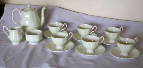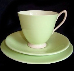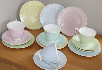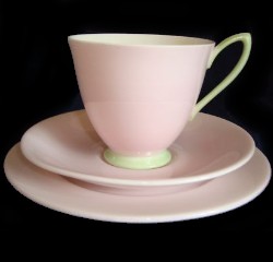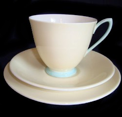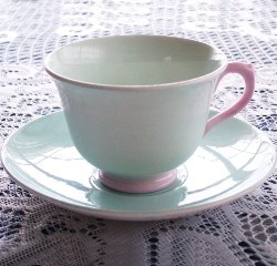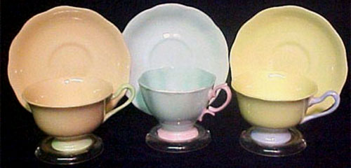 Pastella EST 1935 to 1950s Colors: Yellow with Blue, Pink with Green, Green with Pink, Blue with Yellow, Peach with Green, Green with Peach Cup Shape: Avon, Countess, Doris, Malvern and Smooth |