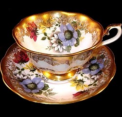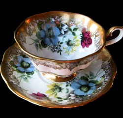 Series of Eight: Different Floral Designs with Heavy Gold Trim