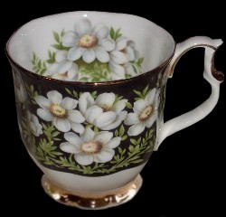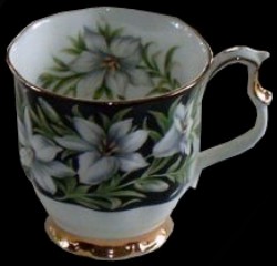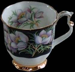 Shape: Gainsborough, Gainsborough Mug, Series of 12: Alberta Rose, Dogwood, Fireweed, Lady's Slipper, Madonna Lily, Mayflower, Mountain Avens, Pitcher Plant, Prairie Crocus, Prairie Lily, Purple Violet, and Trillium These series are also in a Black Chintz Floral design![]() ![]() ![]() ![]() |